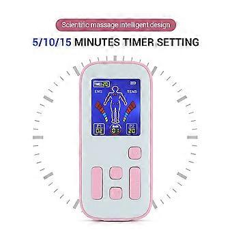 Features:1.This multifunctional massager uses 2 massage therapies (EMS low frequency/TENS intermediate frequency) to relieve muscle tension and discomfort, thereby reducing muscle soreness and relieving physical fatigue.2.Dual output design: suitable for the whole family, allowing 2 people to use it at the same time, and each uses different modes and different strengths.3.35 modes, 20 levels of strength, effectively relieve all kinds of symptoms such as muscle soreness, back pain, shoulder and neck pain, leg pain, etc., bringing you unexpected relaxation.4.The massage patch can be attached to multiple parts of the body for full-body acupoint massage, such as shoulders, back, waist, arms, legs, etc.5.Timing function: 5/10/15 minutes timing setting, scientific massage intelligent design, easily relieve fatigue and help you release body pressure.* Patches are generally replaced once more than two months, and the length of the replacement interval will vary according to the frequency of use.Specifications:Material: ABSColor: pinkSize: Bayonet diameter 3.5cm, host 12*5.5*1cmPacking size: 15*9.3*5.7cmRated voltage: 3.7VOutput electric power: 0.2APower input: 100-240V ACHost power: 1-350HzDC: 5V 300MARated power: 4W Built-in battery: 90mahCharging time: 2 hoursUse time: one week (15 minutes each time, 2-3 times a day is recommended)Packing List:1* Pink host2* 1 tow 2 electrode wires (the diameter of the buckle hole is 3mm)16* Patch (8 pairs) 3mm buckle 1* USB Charging Cable1* English User Manual