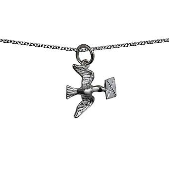 Please be aware before ordering: This item is dispatched from the United Kingdom. If you are ordering for delivery outside of the UK, please note that your order may be subject to import duties and taxes, which are levied once the goods reach the country of destination. Any such charges levied in relation to customs clearance must be paid by you (the receiver/importer). It is accepted by you that British Jewellery Workshops has no control over additional charges in relation to customs clearance. British Jewellery Workshops recommend that you check with your local customs officials or post office for more information regarding importation taxes/duties that may be applicable to your online order. You will be the importer of record and responsible for any import VAT and duty that needs to be paid. In addition, any charges for import clearance will be paid by you, the customer. Sterling silver 16x15mm solid pendant, modelled on a homing pigeon carrying a letter or message. Made in Birmingham, hand polished it comes to you carefully prepared in a black leatherette gift box and is fitted with a diamond cut curb chain 24 inches long. Please note that weights can vary with handmade or hand polished products, this is an average weight that we would expect the item to weigh.