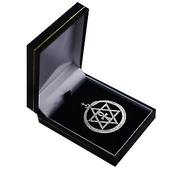 Please be aware before ordering: This item is dispatched from the United Kingdom. If you are ordering for delivery outside of the UK, please note that your order may be subject to import duties and taxes, which are levied once the goods reach the country of destination. Any such charges levied in relation to customs clearance must be paid by you (the receiver/importer). It is accepted by you that British Jewellery Workshops has no control over additional charges in relation to customs clearance. British Jewellery Workshops recommend that you check with your local customs officials or post office for more information regarding importation taxes/duties that may be applicable to your online order. You will be the importer of record and responsible for any import VAT and duty that needs to be paid. In addition, any charges for import clearance will be paid by you, the customer. Sterling Silver 36mm round Eternal Life Pendant, an ankh cross inside a star of david inside a snake. Made and hand polished in our Birmingham factory and comes to you carefully prepared in a black leatherette gift box. Please note that weights can vary with handmade or hand polished products, this is an average weight that we would expect the item to weigh. This price does not include a chain.