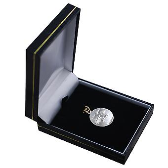 Please be aware before ordering: This item is dispatched from the United Kingdom. If you are ordering for delivery outside of the UK, please note that your order may be subject to import duties and taxes, which are levied once the goods reach the country of destination. Any such charges levied in relation to customs clearance must be paid by you (the receiver/importer). It is accepted by you that British Jewellery Workshops has no control over additional charges in relation to customs clearance. British Jewellery Workshops recommend that you check with your local customs officials or post office for more information regarding importation taxes/duties that may be applicable to your online order. You will be the importer of record and responsible for any import VAT and duty that needs to be paid. In addition, any charges for import clearance will be paid by you, the customer. A 1/20th layer of 14ct yellow gold is laid on top of Silver this is not plated the 14ct is 5% of the weight of this yellow gold 21mm round St Christopher with a car, airplane, trian and ship it is stamped on the back leaving enough room for a few engraved intiials. It is it is stamped from 1 mm thick sheet. Made and hand polished in our Birmingham factory and comes to you carefully prepared in a black leatherette gift box. Please note that weights can vary with handmade or hand polished products, this is an average weight that we would expect the item to weigh. This price does not include a chain.