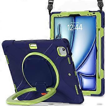 Hybrid Silikon PC Tablet Hülle mit Schultergurt und Halterung für Apple iPad Air 13 2025 / 2024 / Pro 12.9 2022 - Maximale Funktionalität und Schutz in EinemErleben Sie erstklassigen Schutz in Verbindung mit bequemer Handhabung für Ihr Apple iPad Air 13 2025 / 2024 / Pro 12.9 2022 mit dieser Hybrid Silikon PC Tablet Hülle. Die intelligente Kombination aus Silikon und PC bietet robusten Schutz vor Stößen und Kratzern, während der Schultergurt und die integrierte Halterung zusätzlichen Komfort und Vielseitigkeit bieten.Eigenschaften:Perfekte Passform: Diese Hülle wurde speziell für das Apple iPad Air 13 2025 / 2024 / Pro 12.9 2022 entwickelt, um eine präzise Passform und eine nahtlose Integration zu gewährleisten.Hybrid Silikon PC-Material: Die Kombination aus Silikon und PC bietet eine optimale Stoßfestigkeit und schützt Ihr Tablet vor täglichem Verschleiß.Schultergurt: Der verstellbare Schultergurt ermöglicht es Ihnen, Ihr Tablet bequem über der Schulter zu tragen, ideal für unterwegs.Integrierte Halterung: Die eingebaute Halterung bietet Ihnen die Freiheit, Ihr Tablet in verschiedenen Winkeln aufzustellen, um bequem Videos anzusehen, zu arbeiten oder Videokonferenzen abzuhalten.Präzise Aussparungen: Alle Anschlüsse, Tasten und Funktionen bleiben leicht zugänglich, ohne dass die Hülle entfernt werden muss.Ergonomische Handhabung: Das ergonomische Design sorgt für eine bequeme Handhabung und schützt Ihr Tablet sicher.Schlankes Design: Trotz der robusten Bauweise bleibt das Design schlank und betont das moderne Erscheinungsbild Ihres Apple iPad Air 13 2025 / 2024 / Pro 12.9 2022.Diese Hybrid Silikon PC Tablet Hülle mit Schultergurt und Halterung bietet Ihnen nicht nur herausragenden Schutz, sondern auch maximale Funktionalität. Investieren Sie in eine Hülle, die Ihr Tablet sicher und komfortabel macht und gleichzeitig stilvoll präsentiert. Genießen Sie die Vielseitigkeit, die diese Hülle Ihrem Apple iPad Air 13 2025 / 2024 / Pro 12.9 2022 verleiht, und bleiben Sie stets produktiv, egal wohin Sie gehen.Passend für:Apple iPad Air 13 2025 / 2024 / Pro 12.9 2022Lieferumfang:Cover wie abgebildet in der Farbe Grün / Blau