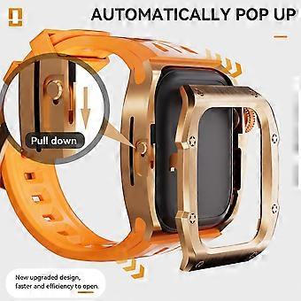 Robuste Metall Hülle integriertem Silikonarmband für Apple Watch Series 10 46mmDie Premium Metallhülle mit integriertem Silikonarmband ist die perfekte Kombination aus Stil und Funktionalität. Entwickelt für die Apple Watch Series 10 46mm, bietet sie umfassenden Schutz und hohen Tragekomfort.Material: Gefertigt aus SUS 316L Edelstahl und hochwertigem Silikon für nahtlose Passform und optimale Haltbarkeit.Schutz: Effektiver Schutz vor Kratzern, Schmutz, Rissen und täglicher Abnutzung.Komfort: Einfach zu installieren und angenehm zu tragen. Das Armband ist leicht anpassbar, um perfekt ans Handgelenk zu passen.Design: Stilvolle und moderne Optik mit langlebigem Material.Funktionalität: Umweltfreundliche Technologie und präzise Verarbeitung für die perfekte Passform Ihrer Apple Watch.Mit dieser robusten Metall-Silikon-Hülle wird Ihre Apple Watch nicht nur geschützt, sondern auch stilvoll aufgewertet.Passend für:Apple Watch Series 10 46mmLieferumfang:Metallgehäuse mit integriertem Silikonarmband in Rose Gold / Orange