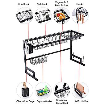 Package Includes:1 x 65CM/85CM Shelf1 x Bowl Rack1 x Dish Rack1 x Square Basket1 x Cutter Holder1 x Chopsticks Cage1 x Chopping Board Rack1 x Fruit & Vegetable Basket(65CM Type: Not Included, 85CM Type: Included)1 x Gift: (Hooks,Suction Cup, Installation Tools)Features:* Large Capacity: Compact design, it has a lot of space for fixing plates, bowls, etc. Side frames for storing spoons, chopsticks, kitchen cutters, chopping boards and other items.* Space Saving: Save tons of space and time by easier storage of your utensils and dishes. Pay back a clean and tidy kitchen for you.* Material: Stainless steel covered with black Piano Finish. Dual protection ensures no rusting, long lasting durability and easy clean.* Bottom Anti-slip Suction Cup: Suck the table top, protect your sink and counter from scratches, and fix the shelf without moving.* Easy To Clean: Easy to assemble and clean, keep the inside dry, detachable.Specifications:Color: BlackMaterial: Stainless SteelLength: 65CM, 85CMThe Height of the Faucet: 43cm/16.9inchThe Length of the Sink(65CM): Should Be 24.8 inch(85CM): Should Be 32.6 inch