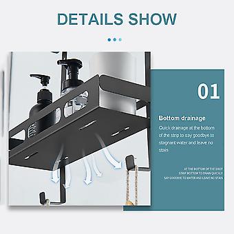 Main Features: SPACE SAVING: Over-the-door racks can be an effective way to organize while maximizing limited space. This over the door hanger includes 2 shelf baskets and 2 hanging hooks, it utilize the vertical space by providing additional areas for daily essentials, towels, loofahs, etc. STABLE AND STURDY: It features suction cups, so you can attach it to a standard shower door or curtain rung, keep the shower caady in place, prevent the door from scratches. Max. load (per tier) is 11 lbs (5 kg). MAXIMUM THICKNESS: Fits max. door thickness is 2" (50mm). Easily hang over the top edge of the standard bath or shower door.SpecificationColour: BlackMaterial: 304 Stainless steelInstallation method: Punch freeDimension1 Tier Size: 35x12.2x45CM (13.8x4.8x17.7")2 Tier Size: 35x12.2x74.5CM (13.8x4.8x29.3")Package Contents1 x Bathroom Shelf with Suction Cups