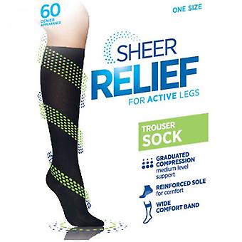 Support your legs where they need it most. The Sheer Relief 60 denier Trouser Socks have graduated compression, a reinforced sole with cotton for lasting freshness and support all day long.60 Denier appearance soft opaque leg.Graduated compression helps relieve tired and achy legs.Reciprocated heels for optimal compression positioning.Reinforced sole with cotton for lasting freshness and underfoot support.Wide comfort band.Reinforced sole for comfort.Ultra fresh anti-bacterial protection.12 Pairs PackStyle: H33087 Black