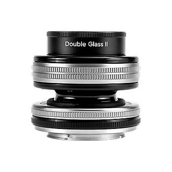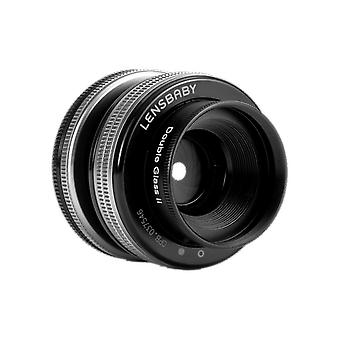 This Lensbaby Composer Pro II + Double Glass II for Canon EF mount camera system comes with an aperture range from f/2.5 to f/22, the Double Glass II optic from Lensbaby is a ne.w-and-improved version of one of the earliest and most popular optics in Lensbaby?s Optic Swap System, the original Double Glass optic. Compatible with all of Lensbaby?s current and legacy Optic Swap lens bodies, the Double Glass II improves on its predecessor by adding all-metal construction and a 12-blade manually adjustable internal aperture to its unique and versatile drop-in magnetic aperture system.Nine specialty drop-in magnetic aperture disks ship with the Double Glass II optic. A five pointed star, a heart and another seven of the nine artistically designed and shaped drop-in apertures, developed by visual artists in the Lensbaby community, modify the out of focus areas of the image to add texture.When images shot with these uniquely shaped drop-in apertures contain out of focus points of light those points of light are rendered in the shape of the aperture. Lensbaby?s Double Glass II optic is compatible with all Optic Swap macro accessories including Lensbaby?s 46mm Macro Filter Kit and Macro Converters.Specs:Focal Length: 50mmPrimary Effect: Double GlassOptic Swap Compatible: YesAperture Range: f/2.5 - 22 internal aperture + drop-in magnetic aperture disk compatibleMinimum Focus Distance: 380mm (15.0in) In Composer lens bodiesMaximum Focus Distance: InfinityFilter Threads: 46cmFormat Compatibility: 35mm Full Frame; APS-CCamera Mount Compatibility: Canon EF mount SLR camerasFocus Type: ManualDiagonal Angle of View:- Full Frame: 45- APS-C (1.5x): 31Angle of Tilt: Tilt is not recommended for the Double Glass II OpticDiaphragm Blades: 12Elements/Groups: 2 elements / 1 groupCoating: Broadband multi coated anti-reflective