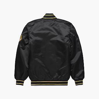 Mid weight jacket suitable for moderate temperatures. Inner lining 100g soft polyester quilted. Ribbed on collar, cuffs and waistband. Material: 100% Polyester Satin finish. Stand-up collar Machine wash, tumble dry low. Locker loop. Two front pockets. One interior pocket. Full Snap Â