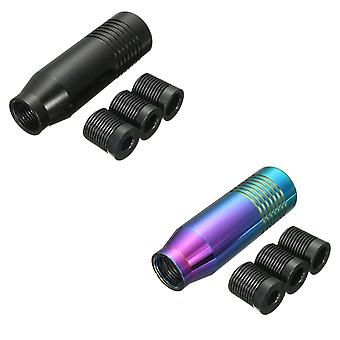 Features:Easy to install.A perfect decoration for your car.High quality alloy aluminium material.Specifications:Material: Alloy AluminumColor: Black,Silver, Red, Blue, Titanium, Colorful, Purple, GoldHeight: 85mmWidth: 28mmMount Hole Diameter: 17.5mmFitment: For manual transmission shifter carsPackage Includes:1x Shift Knob3x Adapters(8mm, 10mm, 12mm)