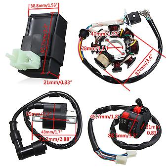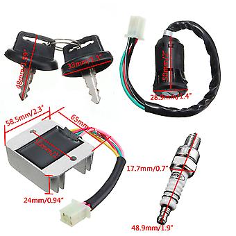 Product Name: Spark plug Switch Razor CDI Coil Wire Harness (Complete Electric Kit)This CDI is AC Fired.Fitment: 125cc 150cc 200cc 250cc push rod enginePackage Includes:2 X Mounting Holes Magneto/Stator2 X Keys1 X Quad Wire Harness1 X Twin Plug CDI1 X Coil1 X Spark Plug1 X Rectifier1 X Key Switch1 X Estart/Kill Cluster Switch/Remote Choke
