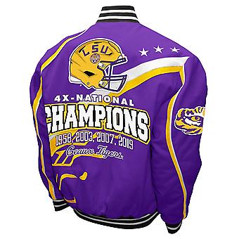 100% Cotton, Full-snap Jacket with a locker loop Rib-knit striping on cuffs, collar and waist hem Embroidered fabric appliqués and graphics Diamond-quilted lining, Stand-up collar, Two front pockets mid-weight jacket suitable for moderate temperatures