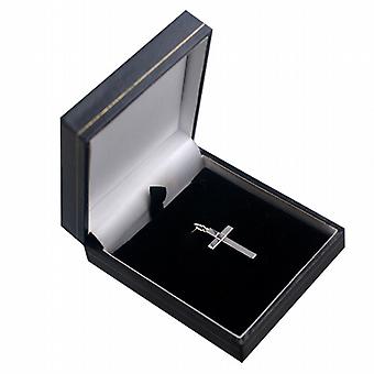 Please be aware before ordering: This item is dispatched from the United Kingdom. If you are ordering for delivery outside of the UK, please note that your order may be subject to import duties and taxes, which are levied once the goods reach the country of destination. Any such charges levied in relation to customs clearance must be paid by you (the receiver/importer). It is accepted by you that British Jewellery Workshops has no control over additional charges in relation to customs clearance. British Jewellery Workshops recommend that you check with your local customs officials or post office for more information regarding importation taxes/duties that may be applicable to your online order. You will be the importer of record and responsible for any import VAT and duty that needs to be paid. In addition, any charges for import clearance will be paid by you, the customer. Sterling Silver 25x15mm engine turned centre square block Cross. Handmade from 3 mm by 3 mm square wire, the back and sides are also plain highly polished. Made in Birmingham it comes to you carefully prepared in a black leatherette gift box. This price does not include a chain.