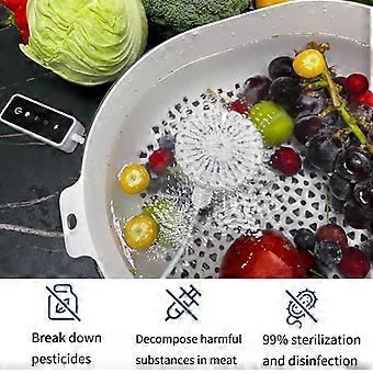 Product name: Fruit and vegetable cleaning machineSize: 56*145mmVoltage: 5V/8WEach work: 10 minutes (3-5L capacity of water)Applicable water source: tap water, filtered water and other water qualityOur advantages:1. Hydroxy water ion purification technology & super shock wave2. Remove pesticide residues, kill bacteria, multi-type cleaning3. No need to pick the container, compact and portable, wireless charging4. IPX7 host waterproof, anti-leakage structure, no strong electrical contact5. The sterilization rate is > 99.9%, and the pesticide residue rate is > 90%6. No container, no volume limitPackage List:Washing Machine*1USB Cable *1English Manual*1
