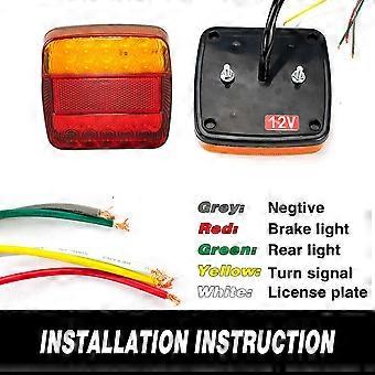 Features:--Low energy consumption. Durable, impact resistant, fully waterproof, shockproof.--Easy to install, bright and durable.--After tested: All items are checked and tested carefully by our technical department.--Application: Can be widely used in 1 trailers, freight liners, emergency vehicles and service vehicles, etc.Description:Name: Tail LightMaterial: ABSLight function: stop, turn, tail, license plate lightLED light colors: red and yellowNumber of LEDs: 20 high quality LEDs per light (10 indicators, 10 stops/tails)Lamp with 6 Board LightsVoltage: DC 12VDimensions: 105 x 105 x 30 mm (l x w x h)Distance between fixing bolts: 55mmCompatibility: Universal trailers, tractors, trucks, utes, boats, buses, caravans, etc.Installation Notes:Grey - negativeRed - brake lightGreen - rear lightYellow - indicatorWhite - License Plate LightsPacking list:2 x Tail LightNote:1. Due to manual measurement, please allow 1-3mm error. Make sure you don´t mind before bidding.2. Due to the difference of different monitors, the picture may not reflect the actual color of the product. Thanks.