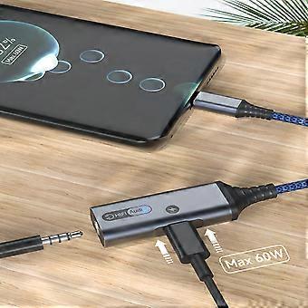 Features:1. Interface:USB Type C (Male) to 3.5mm Earphone jack (Female)+ Type C Charging Port(Female)2. HiFi Definition Sound Quality:32bit / 384KHz HD sampling rate,built-in DAC chip,high quality definition sound, catch every detail, pure HIFI sound quality3. 60W PD Fast Charge:Support charging and listen/call at the same time,support 60w max PD fast charging for the phones.4. Support Calling /Listening to the music, OMTP / CTIA Headphone automatic switching5. Wide Compatibility:suitable for following devices:For Apple Ipad Pro11´´/12.9´´ 2018 / 2020For XiaomiMi 10/ Mi 10 Pro/Mi 9/Mi9 se/Mi 8/Mi8 se/Mi8 lite/Mi 6/Mi 6x/Mi 5x/Mix 3/Mix 2/Max 2/Mi 2S/Mi Note 3/Black Shark 2/HeloFor HuaweiMate 40 series/ P40/ P40 Pro/ P40 Pro Plus/P30/P30 Pro/P20/P20 Pro/Mate 20 Pro/Mate 10/Mate 10Pro/P20 RS Porsche Design; Nova 5/5 Pro;Honor20/20 Pro/10/V10/Note 10/Magic 2Huawei Tablet: M6 8.4inches; M5 8.4inches/10.8inches; M5 Pro 10.8inchesFor SamsungGalaxy Note 20/Note 20 Ultra /Z Flip / S20 / S20 Ultra / S20 Plus 5G /Note 10/10 Plus /S10 LiteFor SonyXperia XZ2/XZ1/XA2 Ultra/XZ PremiumFor OPPOFind X/R7 ProFor Smartisan Nut3/Pro/Pro 2/Pro 2SFor Oneplus8 / 8 Pro /7/7 Pro/6tFor MotoZ /NubiaZ17 /HTC10For GooglePixel 2 3 4 XLProduct parameters:Product name: Type-C to Type-C+3.5mm audio adapterItem model number: MH-339AColor: blue/blackShell: aluminum alloyWire: Braided armor wireLength: about 160mm.Interface: 3.5mm headphone jackFast charge: 60W QC/PD fast chargePacking: baggedPacking size: 61*173*18mmProduct net weight: about 12.5gTotal package weight: about 27.5gPackage Included:1 x 2 In 1 Type C To 3.5mm Cable