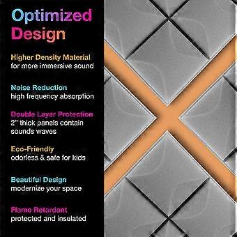 Features:High-density Soundproof Foam Panels - greenenvironmental protection, washable, flame retardant, impact resistance, easy installation.Multicolor selectionNo odor, No toxicity, No formaldehyde.Note: Soundproof foam is an essential aid to improve sound quality,such as making YouTube videos or recording podcasts, studio recordings.Material:Environmentally friendly polyurethane sound foam(Made of E1 level eco-friendly material)Specification:Size: 30x30x5cm/12"x12"x2"Package: 6* Soundproof Foams3D ACOUSTIC DESIGN:Our 2 inches soundproof wall panels provide moderate sound control on walls or ceilings.Perfect for individuals to reduce and absorb unwanted echoes,waves, reverb and flutter echoesImproves sound quality.