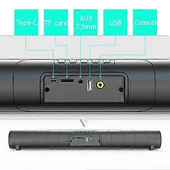 Feature:1.Regular curve design make it more administrative levels sense2.Support bluetooth & remote control3.Ergonomic palm radian4.Smooth to the touch & Exquisite blue body5.High-level configuration6.Exquisite workmanshipSpecificationsSpecificationsBluetooth: 5.0Chip: AC6921ADistance: 10MRated power: 5W*4Regulator:Five key operation + remote controlMusic File format: WMA/APE/MP3/FLACStorage device Type: WMA/APE/MP3/FLACInput audio Type: Bluetooth /TF card/coaxial /3.5mm/ USB disk /FMBattery capacity: 2000mAHCharging time: About 3HPlay/talk timeabout 4-6 hoursPackage Dimensions/Weight Size 540*90*90mmWeight: 870gPackage: 1pc* Sound BarCoaxial/RCA ConnectionThe Latest Bluetooth 5.0: No lag, No delayIncredible deep bass: As deep as 50Hz - 20KHzButton & Remote Control3D Surround SoundUSB flash disk: supports lossless music