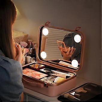 Feature:Name: Smart LED Light Mirror Cosmetic BagMaterial: composite PC material + aluminum alloy frameWeight: Style A: 1.3kgStyle B: 1.6kgCharging: USB chargingSize: Style A: 26x23x11cmStyle B: 34x24x12cmMirror size: 33x23cmBattery capacity: 2000mAh