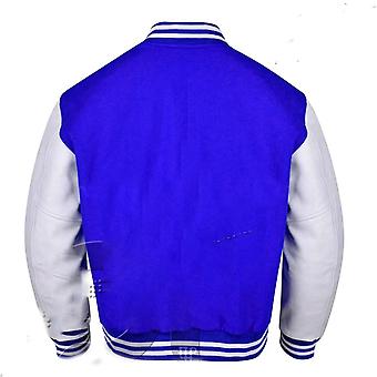 Varsity Letterman Bomber Royal Wool & White Leather Sleeves Jackets