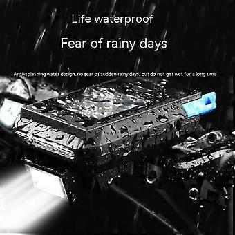 Name: bicycle yardstick horn lightMaterial: ABSLamp beads: T6 lamp beadsBrightness: 800 lumensHorn: 120dBBattery: 2000mAhWaterproof: IP65 waterproof ratingLight way: German standard anti-shooting eyesColor: black/blue/red/greenWay: code table and sensor for not wire connectionScreen: backlight display at nightLight mode: strong light / low light / SOS / flashing / warningWeight: 311 grams (including packaging)Size: 11.9 * 5.8 * 9 cm