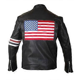 Captain America Flag Peter Fonda Easy Rider Black Leather Jacket