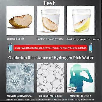 Features:Hydrogen water keep your arteries clean, also slows down the anti-aging process. Efficiently reduce oxidative stress and improvement of mitochondrial diseases.Improve cellular health and enhance better nutrient absorption in the body,Improvement of blood glucose HbA1c levels in diabetes, reduce saturated fat levelsNo more Ozone and harmful gasses:adds hydrogen which is better for health, and removes, ozone and other harmful gasses, which can be harmful.Improve memory in aged individuals - reduce constipation problemsPortable & Easy use. Make a glass of hydrogen water in just 3 minutesSpecifications:Product name: Hydrogen-oxygen separation hydrogen-rich cupVoltage-Electricity Rate: Applicable 100- -240V-50-60HZProduct capacity: 420mlFull power usage times: 15-20 timesSize: 7*20.7CMVoltage: 220VPower: 10WCharging time: 2-3 hoursWorking time: 3 minutes-1 timeColor: Silver - BlackHow to use it ?. Pour in drinking water. Just press once, blue light will light up, 3 minutes hydrogen will be generated, Then it will automatically turn off. Long press button 3S to force shutdown, blue light goes out. When it is no power, flash red light. When charging, red light is displayed, when fully charged, green light is displayed. Turn glass counter-clockwise after the scale on electrolyte film is generated. After cleaning, turn it clockwise to tighten glass.Note:1. After receiving product, please charge it for 3H before using it. Don´t use it while charging, it can only be used after disconnecting power2. Don´t use juice or drinks.3. Water temperature should be below 60 C.4. When using for the first time, some water may remain close to the bottle. This is residual water for factory inspection and does not cause health problems.5.If the water quality is too hard, causes deposits and affects hydrogen generation, please wash it with white vinegar.Product List:1 x Hydrogen Water Generator1 x USB Cable