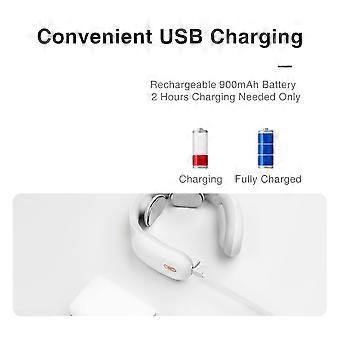Features[Ergonomic Wearing Comfort] Skin-friendly silicone material can deliver smooth and soft touch feelings and 304 stainless steel electrode pads will perfectly fit your neck curve with gentle care.[Electric Therapy] Provides life-stimulation pulse massage to stimulate meridians and collaterals and improve muscle performance, effectively helping relieve pain and fatigue around your neck.[Constant Heating] Provides 42 warming treatment to improve the blood circulation, soothe tired muscles and relieve aches thoroughly by pressing the middle button.[Custom Massage Fit] Built-in 3 massage modes(M1:Soothing Mode/M2:Active Mode/M3:Auto Mode) and 15 massage intensity levels, effortlessly to adjust with remote control according to your demands.[Continuous Enjoyment] Can be directly powered by USB charging, you can easily access power by adapter, computer, power bank, and so on.[Enhanced Safety] Auto power-off function, it will automatically turn off when there is no operation, energy efficient and safe.[Whisper Quiet] High frequency mute design and noise reduction function, you can get fully immersed in your enjoyment without disturbing others.[Wide Applications] Lightweight and space saving design, convenient to carry around at home, in your office and even during travel, you can easily access relaxing massage enjoyment and daily neck care wherever and whenever you want.SpecificationsMaterial: PC, SiliconeColor: WhiteInput: DC 5VMax. Power: 5WQuiescent Current:
