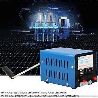 Feature:1. Portable hand-operated and rechargeable emergency power supply;2. The hand-cranked generator can be actively used in emergency communication, long-term power shortage, tourism, emergency power consumption, etc. The faster the shaking speed, the greater the power, and the crest power is about 20W.Specification:Main body material: stainless steelProduct color: blueProduct size: about 127x88x86mmProduct net weight: about 800gPrecautions:The generator output voltage must be greater than the set voltage in order to stabilize the output set voltage.When using the USB port for external electrical appliances, be sure to adjust the voltage to 5V first.Please shake the generator clockwise, do not shake the handle at high speed when connecting electrical appliances less than 3 watts.