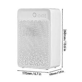 Features: Efficiently humidity control, dry air Silent, Portable and compact dehumidifier efficiently removes damp, mould and moisture from the air. Perfect for use in small areas such as the kitchen, wardrobe, storage rooms, bedroom, living room, office or anywhere else prone to damp air. Auto-off and LED indicator when full The dehumidifier will shut off automatically once it has reached capacity. Absorbs moisture up to 250ml / day, and 500ml water tank capacity with removable tray. One On / Off button No noise device uses a natural process, easy to use. Compact, portable and lightweight This compact and portable design make it easy to move your dehumidifier from room to room. Specifications: - Water tank capacity:900ML - Power:22.5W - Noise: Lower than 35dB - Size: 268mm*170mm*100mm/10.6in*6.7in*3.9in- Applicable area:107-215ft - Timing:4/6/8HFeature: Compact, portable and lightweightPackage Contents:1 x Dehumidifier1 x User Manual1 x Adapter