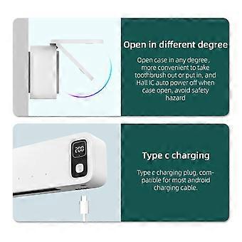 Functions:1. 99.9% sterilizing rate UV-C sterilization2. Tubo fan fast dry, speed up evaporation of residual water on bristles, prevent breeding of bacteriaFeatures:1. Digital screen sterilization counting down display2. Pouch-free installation, strong 3M adhesive, applicable on different materials3. Detachable, easy to clean4. Multi-level hover cover, auto-off once the cover is complete opened, stop UV light from hurting people5. Power indicator: Twinkling red-Low power, Red-Charging, Green-Fully charged
