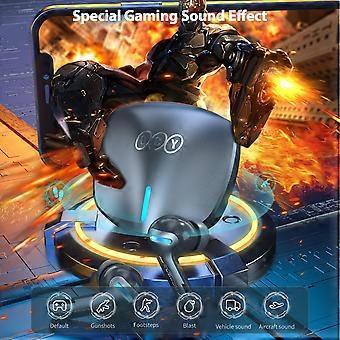 Features:* V5.2 Bluetooth Version+45 ms SenselessDelayPacked with PixArt Bluetooth 5.2 gaming chip, QCY G1 delivers ultra-low latency and stable connection for your virtual combat.Average level: Over 200 ms , QCY G1: 45 ms* Professional Game Sound Effects3D stereo effect,360 degrees more accurate listening positionmore accurate listening position, immersive gaming experience.* Game EQ Free Adjustment:You can also switch the game EQ freely through the APP setting, and highlight the sound effects you want to listen to at any time when the black is turned on,like gunfire, footsteps, blasting, vehicle, aircraft.Focus on highlighting the sound you want to hear, a weapon for winning.* 4 MIC+ ENC Call Noise Reduction:Keep talking with teammates in game, with ENC technology, a dual-microphone array is built in each earbud to collect vocals in not only calling but gaming.* Stereo HIFI Sound:10mm large-diameter driver,three-frequency balance, stereo HIFI soundenjoy the HIFI sceneand, enjoy the immersive 3D stereo surround sound effect.* Cool DesignBreathing Light and technology blue energy light bar design,genes of QCY E-Sport,inspired by the well-known RoboCop, the technology blue lighting band is like your third eye fixed on every opportunity. With metal finishing,the mother ship-like charging case assures you of victory.Cool but not dazzling lighting effects, highlighting the unique personality of players.* Long Battery Life:32 hours of long-lasting total battery life,keep playing with power.With gaming mode off, one single charge provides some 8 hours while the case gives extra 24 hours.Normal mode: 8hr+24hrGaming mode: 6hr+18hrCharge time:1.5~2h* Two Modes of effects can be switched At Will:You can switch the game/audio sound effects with one key through the QCY APP, and easily experience a variety of professional sound effects;* More Functions:Support Wireless chargingLay down to charge.Pop upPairing pop-up window.Touch-PressureFree touch control.QCY APP Customizing EarbudsBuild G1 in your own way.TWO Modes Can Be Switched At WillGame mode and Video modePackage Includes:1. Earphones and charging compartment *12. Ear caps*3 pairs of S/M/L (including 1 pair of earphones)3. Manual *14.Type-C charging cable*1