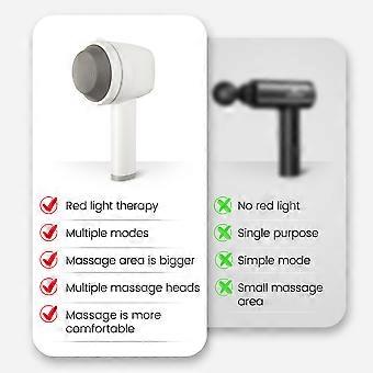Electric Massage Hammer Percussion Body Slimming Massager Anti Cellulite Infrared Therapy Deep Tissue Vibration Muscle RelaxtionInfrared Heating TherapyThe massage hammerwith red light heating therapy have multiple functions that can be used to promote blood circulation, relieve swelling and pressure. Percussion massager can relieves muscle tension, knots, spasms, aches, and pains. well promoting stress relief with full massage on such body parts as neck, arms, back, and legs.6 Levels Intensity & 5 Massage ModesDeep Tissue Massage with a powerful motor that can choose 6 levels massage intensity and 5 massage modes, manage the intensity and power of the massager through multiple personalized speed features that allow you to adjust the motion and strength as desires. High frequency large motor,Powerful Motor, Its speed and depth of movement create a deep, soothing massage.8 Interchangeable Massage HeadsThis handheld percussive massager for neck and back pain Comes with 8 customized massage heads allow you to reach every muscle, providing a targeted massage head for each muscle, which will provide you a different massage experiences.It can help target key muscle groups to increase mobility and help relieve soreness for any part of the body.Larger Massage AreaCompared with the fascia gun, there is a larger massage contact area and more conveniently massage any part of your body. Its also perfect for use at home or on the go, take with you to the office or while traveling for continuous enjoyment.Cordless and RechargeableThe cordless massager is equipped with 1800mAh high-quality rechargeable lithium-ion battery. One time full charge, 15mins of use each time, can be use for about 40 days. Eco-friendly ABS with frosted design makes the massage hammer a perfect gift.