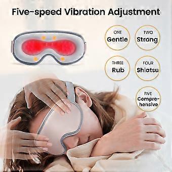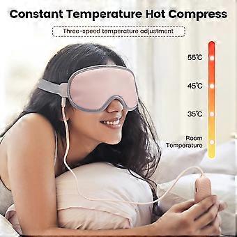 SpecificationsType: Heated Compress& Vibrating Massage Eye MaskColor: Pink,Green.Material: Microfiber Leather, silicone.Size: About 20.00X9.00X2.00cm/7.86X3.54X0.79in.Battery capacity: 1800mAh.Input Current: DC5V 1A.Heating mode: 35C-45C-55CVibration mode: 5 modes vibrationAuto OFF: 30minFull light-block design means no more sleep-disturbing light leak, promoting a deeper, more restful and restorative sleep.Multi-frequency vibration, 5 modes can be adjusted.Our electric eye massager is adopted acupuncture points massage and vibration massage modes to promote the blood circulation of the eye skin, relieve eyes fatigue, remove eye patch, wrinkles and other eye problems. It can effectively help your refreshed after a long time working and enjoy a better sweet dream.Portable and lightweight, easy to carry.FeatureTotally Relieve Your Eyes: Our professional electric eye massager with ergonomic design that can make you feel air pressure, heating, vibration massage, kind of like shiatsu and kneading. It massages your temple and applies comfortable heating on your eye lids and hits on all the acupuncture points surrounding the eye. Helps you to promote the blood circulation, relieve eye fatigue, reduce eye dark circles and deliver you a deep sleep and good dream every night.Larger Size for More Eye Coverage: The heated eye mask 100% covered your eye area, unclog gland and bring a smooth warm compress for eyes, effective relieve your eye strain and Blepharitis, great help to reduce eye swelling, dry eyes or stye.Flexible Heat Adjustment & Timer: It´s designed 3-level heat from 35-45-55 and 30 minutes timer, so you can fall asleep without worrying heat too long. Its remote has an LED displayer, you can even change setting in the darkness with ease.5 Massage Modes to Meet Your Needs: Designed with 5 massage modes (Automatic mode, Vitality Mode, Fresh Mode, Eye Protection Mode, Sleep Mode), heating & vibration functions are combined in different modes with 30 minutes timer, switch as you like and enjoy what you want. Adopted the eye protection protein cortex fabric fabric, adjustable headband and curved nose bridge, the eye mask fits for various face shapes, skin-care friendly and easy to clean.USB Powered: It´s easily powered by PC USB port and power bank, free to relax wherever you go.Best Gift Choice: A perfect gift for Women and Men, Valentines day, Birthday, Mother´s day, Father´s day, Thanksgiving and Christmas.What You Get?Eye mask*1Charging Cable*1Smart controller*1User manual*1