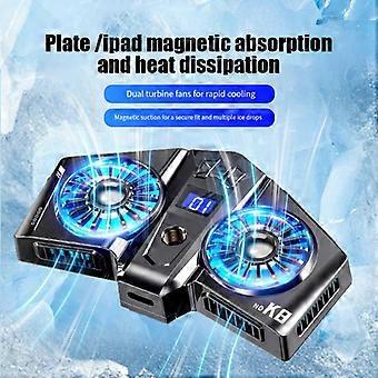 Description:Product name: Flat-panel semiconductor heat sinkProduct Model: K8A Back ClipProduct color: As picture showProduct material: ABS PC/silicone/aluminum alloyProduct process: electroplatingCharging interface: Type-cRated voltage: 5VRated power: 15WScope of product application: universal for mobile phones/tablets/notebooksProduct size: 108*65.4*22.8mmNet weight: 98gPacking size: 95*130*35MMGross weight: 181gSpecifications:1.Magnetic attraction design, support for Phone/Tablet/iPad.2.Dual-engine semiconductor cooling, it can cool down your phone within 3 seconds, avoid overheating, and ensure a stable live streaming or gaming experience.3. Digital temperature temperature display: intelligent LCD screen, scientific cooling does not hurt the machine, cooling can be seen4.Dual silent fan design, which can effectively discharge the wind in all directions, provide stronger refrigeration effect, and will not interfere with your game or live broadcast.5.Extremely hot thermally conductive cooling area covers the CPU and battery modules to protect your phone from overheating.6.With its own bracket access port, it can be matched with a universal wheel bracket and bracket access port.Package Included:1*Mobile Phone Radiator1*Type-c Charging Cable