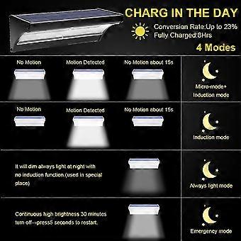 FEATURE:* Super Bright Solar Lights: Upgrated solar light provides excellent illumination, which is far brighter than other similar LED solar lights. A good choice for both pathway and spotlight lighting in your yard.*Upgraged 180 Detection Range The solar lights built-in PIR motion sensor, and motion could be detected within 180 detection range and the induction distance is 5-10 m=196-393inch. It is sensive enough to used as a security light for ourdoor.*Motion Sensor Woking Mode Solar motion sensor light with a high quality battery. After full charged, it will automatically lighting.4 Modes Features: each press of a button will replace a light mode,switch circularly. A long lifespand which amounts to 50,000 hours.* Easy to InstallNo wired need. It could be installed on front door, in outdoor garden, garage, fence,barn,yard,pathway,house,home,door,and other outdoor place without wire.* Endurance IP65 Waterproof,cold-resistant (It can work at minus 22 degrees) and heatproof (It still work at 149 degrees).WORKING MODES:MODE 1 - Dim, full bright when motion detectedMODE 2 - Off, full bright when motion detectedMODE 3 - Medium all night, no motion detectionMODE 4 - Manual - full bright for 30 mins24LED PARAMETER: Solar panel:5V,1.5W Lithium battery:3.2V,1500mAh Maximum lumen:450LM Charging time:6hours Working time:depends on which mode on,more than 500times sensor after fully charged,keep 10 hours at mode 3(about half of strong lighting) Sensing distance:5-10M/16.4-32.8ft Sensing angle:more than 180 Irradiation area more than 3048LED PARAMETER: Solar panel:5V,3.2W Lithium battery:3.2V,3000mAh Maximum lumen:900LM Charging time:6hours Working time:depends on which mode on,more than 500 times sensor after fully charged,keep 10 hours at mode 3(about half of strong lighting) Sensing distance:5-10M/16.4-32.8ft Sensing angle:more than 180 Irradiation area more than 6060LED PARAMETER: Solar panel:5V,4.2W Lithium battery:3.2V,6000mAh Maximum lumen:1100LM Charging time:6hours Working time:depends on which mode on,more than 500times sensor after fully charged,keep 10 hours at mode 3(about half of strong lighting) Sensing distance:5-10M/16.4-32.8ft Sensing angle:more than 180 Irradiation area more than 80