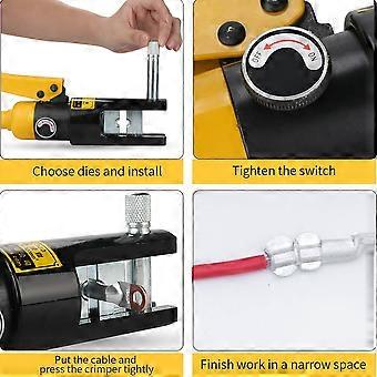 Package Included:1 X Plier8 X Pairs Of MoldsItem Specifics:Name: Yqk-120 Fast Hydraulic ClampMost Under Pressure: 5-10TMax Stroke: 10mm/0.39 inCrimping Range: Cu 10-120mm2Crimping Form: Confining PressureMold Configuration: 10/16/25/35/50/70/95/120mm2Features:1. The terminal crimping tool is suitable for DIN, AWG, JIS specifications.2. There will be a "click" safety protection device when the high and low pressure of the fast two ends is reached.3. One person can work at high altitude, saving time and effort.4. The pump is designed in one piece, and the head can be rotated 180 when pressed.Note:1.Please allow 1-3cm error due to manual measurement. Please make sure you do not mind before you bid.2.We have been constantly improving the effects of photography, but due to different camera and monitor parameters, lighting and other factors, it is still difficult to avoid the color difference between the real object and the photo, so please refer to the actual color.3.The shape or color of some accessories may be improved during sale, but the functions are guaranteed to be the same. If you can´t accept this, please don´t buy, please understand.