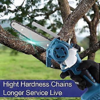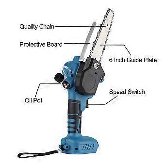 Product parametersSpecifications: 6-inch brushless oiler bare metal (carton packaging)Saw Type: 6" ChainsawMotor Type: Brushless MotorNo-load speed: 11000r/minChain Size: 6 inchesChain Plate Size: 6" ChainsawMaterial: ABS + MetalFeatures:- Chainsaw safety lock, more secure to use.- Rechargeable chainsaw, lightweight and portable, with long battery life and no damage to the case.- The non-slip rubber coated handle can stay fatigue-free for a long time.-Brushless motor, strong power, fast cutting speed, improve efficiency.-High quality switch, speed adjustment, infinitely variable speed.-Intelligent circuit control board, overload protection, to meet your different building needs.- The special guide plate and tungsten steel ball do not need lubrication, which can reduce the resistance and reduce the usage of the machine when the machine is running.- High quality guide chain, deeply hardened, more wear-resistant, smooth cutting.Fits 18v Makita battery (battery not included)Compatible with 18v b series lithium batteries, such as bl1850b (197285-8), bl1840b (197270-1), bl1830b (197602-2), bl1430b (197618-7), bl1820b (197487-6);Compatible with BL1850, BL1840, BL1440 (196391-6), BL1415 (194560-3), BL1815N (196781-3); Not applicable to BL1813G (196663-9) BL1413G (196882-7) BL1415G BL1430G BL1815G etc. g series batteries