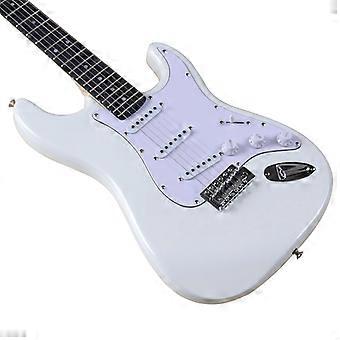 6 String ST Electric Guitar White Solid Basswood Body 39 Inch 22 Frets Electric Guitarra with White Pickguard Free String
