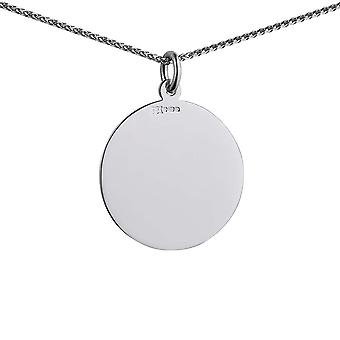 Please be aware before ordering: This item is dispatched from the United Kingdom. If you are ordering for delivery outside of the UK, please note that your order may be subject to import duties and taxes, which are levied once the goods reach the country of destination. Any such charges levied in relation to customs clearance must be paid by you (the receiver/importer). It is accepted by you that British Jewellery Workshops has no control over additional charges in relation to customs clearance. British Jewellery Workshops recommend that you check with your local customs officials or post office for more information regarding importation taxes/duties that may be applicable to your online order. You will be the importer of record and responsible for any import VAT and duty that needs to be paid. In addition, any charges for import clearance will be paid by you, the customer. 9ct white gold rhodium plated 25mm round St Christopher Pendant. It is stamped from 1 mm thick sheet. The plain back and front are ideal for engraving a name, initials or a short message. Handmade and hand polished in our Birmingham Factory in the Historic Jewellery Quarter, England, UK it comes to you carefully prepared in a black leatherette presentation gift box and is fitted with a 1.1mm wide spiga chain 20 inches (50cm) long. Please note that weights can vary with handmade or hand polished products, this is an average weight that we would expect the item to weigh.