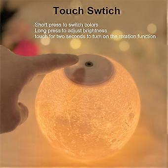 Name: RGB 16Colors 3D Galaxy Moon Lamp Kids Night LightsPower supply:DC/5VMaximum power: 3WProduct size: 12CM/15CM/18CMPackage size :12CM :12.5*12.5*14.5 CM/410G15CM:15.5*15.5*17.5CM/475G18CM:18.5*18.5*20.5CMCertification: CE, ROSH, MSDS, etc.Material: PLA environmental protection materialProcess: 3D printing (non-injected PVC)FeaturesRemote control 16 colors: remote control 16 static colors + 4 dynamic color changingTouch + remote control 16 colors: 16 kinds of static colors and 2 kinds of dynamic color changes can be touched or remotely controlled, with a new timer function, which can be closed after a maximum of 12 hours! !3 hours charging, 500mah batteryRotary plus light for 6 hours, single light for 8 hoursPackage Includes:1 x 3D 16 Colors Moon Lamp1x Remote Controller(With Battery)1 x USB Cable1 x User Manual