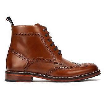 Introducing these lace up brogue boots crafted from burnished tan leather, featuring a unique paisley print lining. Finished with a half leather, half paisley-patterned rubber sole for a stylish and durable design.Key Features:Brand: Ben ShermanUK Shoe Size: UK 12/EUR 46/US 13/AU 14Colour: BrownDepartment: MenUpper Material: LeatherStyle: BootieType: BootCountry of Manufacture: ChinaClosure: Lace UpCustomised: NoVintage: NoSeason: AutumnSeason 1: WinterFeatures: ComfortOutsole Material: RubberOccasion: CasualShoe Shaft Style: AnkleHandmade: No