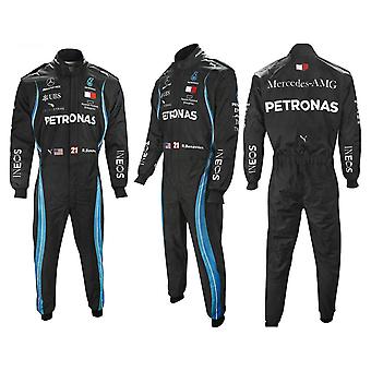 Two Layer One-Piece Suit — Our suit insulates you from the wind, offers more freedom of movement, and protects your body from injury better than other suitsOutside Layer Cordura Polyester and Inside Polyester Mesh — These are light breathable fabrics that will keep you cool and dry throughout the race.Fully Floating shoulder gusset construction with Flexible material — Improve your range and position yourself to stay ahead of the competition. Have the agility you need to win with speed and with grace.Abrasion Resistant — Engineered for the best in abrasion resistance, moisture-wicking and flexibility.Fine and soft collar with Velcro — A soft collar with Velcro at the neckline is comfortable, won´t interfere with your driving and keep you stay cool.Elasticated Cuffs — No more lumps and bumps. Specifically designed high-cut collar and cuffs with light material to keep air circulating around the overall suit to keep you cool while karting.Elastic on the back — Compress your every inch, cutting wind drag and keeping you in a position of power longer. You go faster, win races, and look smarter.Front Two Pockets — Two chest pockets for your gloves, cell phone and other small items.Manufactured to Highest Quality — Designed to withstand the high-impact race environment