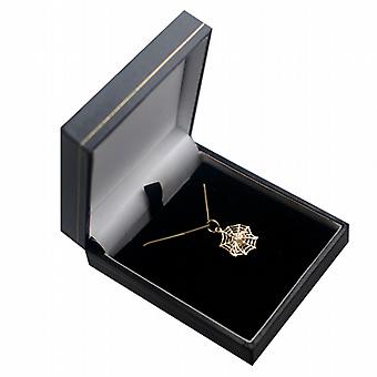 Please be aware before ordering: This item is dispatched from the United Kingdom. If you are ordering for delivery outside of the UK, please note that your order may be subject to import duties and taxes, which are levied once the goods reach the country of destination. Any such charges levied in relation to customs clearance must be paid by you (the receiver/importer). It is accepted by you that British Jewellery Workshops has no control over additional charges in relation to customs clearance. British Jewellery Workshops recommend that you check with your local customs officials or post office for more information regarding importation taxes/duties that may be applicable to your online order. You will be the importer of record and responsible for any import VAT and duty that needs to be paid. In addition, any charges for import clearance will be paid by you, the customer. 9ct yellow gold 17x16mm Spider on Webb Pendant. Made in Birmingham and hand polished it is fitted with a bright cut curb chain 20 inches in length and comes to you carefully prepared in a black leatherette gift box. Please note that weights can vary with handmade or hand polished products, this is an average weight that we would expect the item to weigh.
