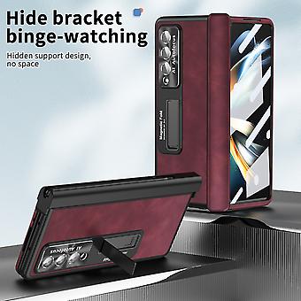 Für Samsung Galaxy Z Fold4 5G All-inclusive 360 Grad Napa Magnetische Handy Tasche Etuis Weinrot Neu