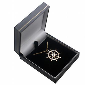 Please be aware before ordering: This item is dispatched from the United Kingdom. If you are ordering for delivery outside of the UK, please note that your order may be subject to import duties and taxes, which are levied once the goods reach the country of destination. Any such charges levied in relation to customs clearance must be paid by you (the receiver/importer). It is accepted by you that British Jewellery Workshops has no control over additional charges in relation to customs clearance. British Jewellery Workshops recommend that you check with your local customs officials or post office for more information regarding importation taxes/duties that may be applicable to your online order. You will be the importer of record and responsible for any import VAT and duty that needs to be paid. In addition, any charges for import clearance will be paid by you, the customer. 9ct yellow gold solid charm or pendant modelled on a Ships Wheel. Made in Birmingham and hand polished it is fitted with a cable link chain 16 inches in length and comes to you carefully prepared in a black leatherette gift box. Please note that weights can vary with handmade or hand polished products, this is an average weight that we would expect the item to weigh. Please note this chain length is short and is really only suitable for children.
