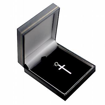 Please be aware before ordering: This item is dispatched from the United Kingdom. If you are ordering for delivery outside of the UK, please note that your order may be subject to import duties and taxes, which are levied once the goods reach the country of destination. Any such charges levied in relation to customs clearance must be paid by you (the receiver/importer). It is accepted by you that British Jewellery Workshops has no control over additional charges in relation to customs clearance. British Jewellery Workshops recommend that you check with your local customs officials or post office for more information regarding importation taxes/duties that may be applicable to your online order. You will be the importer of record and responsible for any import VAT and duty that needs to be paid. In addition, any charges for import clearance will be paid by you, the customer. Sterling silver 25x15mm diamond cut four pointed star set with a diamond Solid Block Cross. Handmade in Birmingham from 2.5 mm by 1.5 mm rectangular wire, the back and sides are also plain highly polished. Made and hand polished in our Birmingham factory and comes to you carefully prepared in a black leatherette gift box.