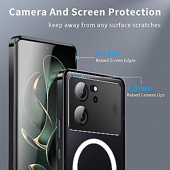 Magsafe Magnetic Metal Design CaseThe protective case convinces with optimal protection, which nevertheless does not impair the functionality of your mobile phone. Due to the sturdy metal, your mobile phone is perfectly protected against external influences and unique due to an individual design. 100% Brand new and absolutely suitable for your smartphone.Due to the special metal construction, assembly and disassembly is possible without any problems. Product details Magsafe metal magnetic case:Openings for headphone jack and microphoneAccess to all controlsOriginal and unique design (magnetic and Magsafe)Opening for the camera lens and speakersCharging of the mobile phone in the protective case possibleScope of delivery:Magnetic Magsafe design protective case for Xiaomi 13T / 13T Pro in black
