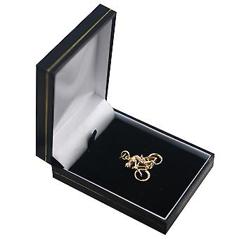 Please be aware before ordering: This item is dispatched from the United Kingdom. If you are ordering for delivery outside of the UK, please note that your order may be subject to import duties and taxes, which are levied once the goods reach the country of destination. Any such charges levied in relation to customs clearance must be paid by you (the receiver/importer). It is accepted by you that British Jewellery Workshops has no control over additional charges in relation to customs clearance. British Jewellery Workshops recommend that you check with your local customs officials or post office for more information regarding importation taxes/duties that may be applicable to your online order. You will be the importer of record and responsible for any import VAT and duty that needs to be paid. In addition, any charges for import clearance will be paid by you, the customer. 9ct yellow gold 18x25mm Bicycle and Cyclist Pendant or Charm. Made and hand polished in our Birmingham factory and comes to you carefully prepared in a black leatherette gift box. Please note that weights can vary with handmade or hand polished products, this is an average weight that we would expect the item to weigh. This price does not include a chain.