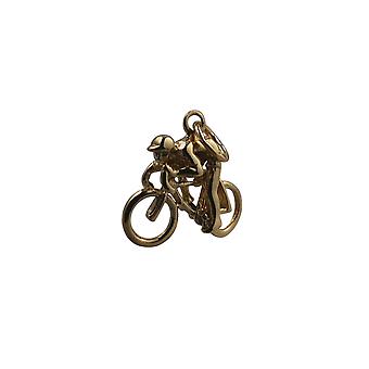 Please be aware before ordering: This item is dispatched from the United Kingdom. If you are ordering for delivery outside of the UK, please note that your order may be subject to import duties and taxes, which are levied once the goods reach the country of destination. Any such charges levied in relation to customs clearance must be paid by you (the receiver/importer). It is accepted by you that British Jewellery Workshops has no control over additional charges in relation to customs clearance. British Jewellery Workshops recommend that you check with your local customs officials or post office for more information regarding importation taxes/duties that may be applicable to your online order. You will be the importer of record and responsible for any import VAT and duty that needs to be paid. In addition, any charges for import clearance will be paid by you, the customer. 9ct yellow gold 14x18mm Bicycle and Cyclist Pendant or Charm. Made and hand polished in our Birmingham factory and comes to you carefully prepared in a black leatherette gift box. Please note that weights can vary with handmade or hand polished products, this is an average weight that we would expect the item to weigh. This price does not include a chain.