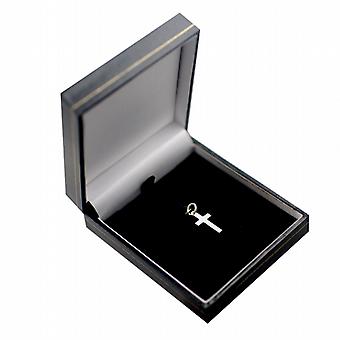 Please be aware before ordering: This item is dispatched from the United Kingdom. If you are ordering for delivery outside of the UK, please note that your order may be subject to import duties and taxes, which are levied once the goods reach the country of destination. Any such charges levied in relation to customs clearance must be paid by you (the receiver/importer). It is accepted by you that British Jewellery Workshops has no control over additional charges in relation to customs clearance. British Jewellery Workshops recommend that you check with your local customs officials or post office for more information regarding importation taxes/duties that may be applicable to your online order. You will be the importer of record and responsible for any import VAT and duty that needs to be paid. In addition, any charges for import clearance will be paid by you, the customer. Sterling Silver 17x10mm diamond cut four pointed star set with a diamond solid block cross. Handmade from 2.5 mm by 1.5 mm rectangular wire, the back and sides are plain highly polished. Made and hand polished in our Birmingham factory and comes to you carefully prepared in a black leatherette gift box.