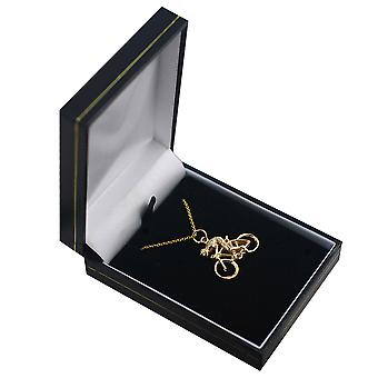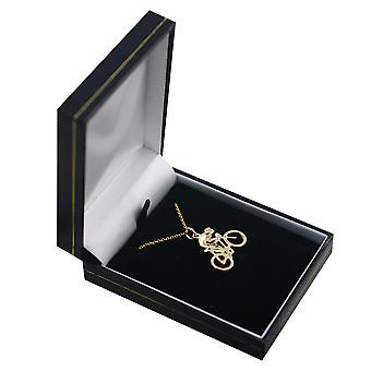 Please be aware before ordering: This item is dispatched from the United Kingdom. If you are ordering for delivery outside of the UK, please note that your order may be subject to import duties and taxes, which are levied once the goods reach the country of destination. Any such charges levied in relation to customs clearance must be paid by you (the receiver/importer). It is accepted by you that British Jewellery Workshops has no control over additional charges in relation to customs clearance. British Jewellery Workshops recommend that you check with your local customs officials or post office for more information regarding importation taxes/duties that may be applicable to your online order. You will be the importer of record and responsible for any import VAT and duty that needs to be paid. In addition, any charges for import clearance will be paid by you, the customer. 9ct yellow gold 18x25mm Bicycle and Cyclist Pendant. Made and hand polished in our Birmingham factory it is fitted with a cable link chain 20 inches in length and comes to you carefully prepared in a black leatherette gift box. Please note that weights can vary with handmade or hand polished products, this is an average weight that we would expect the item to weigh.